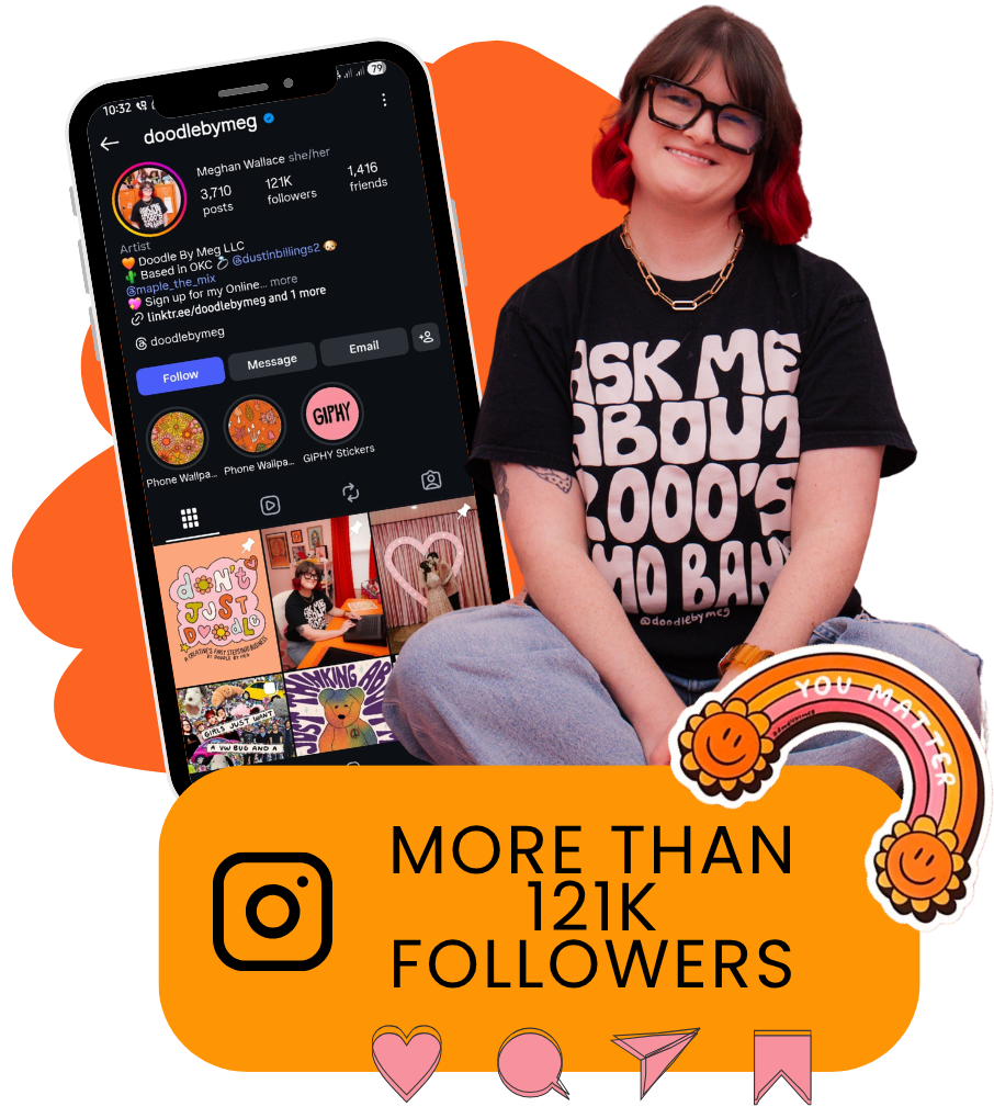 My brand, Doodle By Meg, has been in stores such as Urban Outfitters, Target, World Market, and more! I love to design colorful artwork with humorous messages that people can relate to.